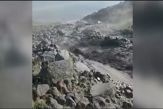 Eriyen kar sularıyla oluşan selin kayaları sürüklemesi cep telefonu kamerasına yansıdı.