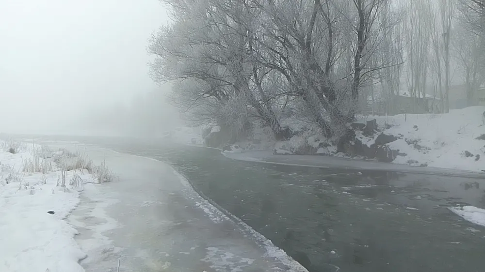 Ağrı'da da dondurucu soğuklar nedeniyle Murat Nehri ve dereler buz tuttu, vatandaşlar araçlarının battaniyelerle örttü.