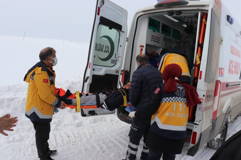İhbarı değerlendiren sağlık ekipleri, biri paletli 2 ambulansla yolun ulaşıma açık olduğu Karakazan köyüne kadar gitti.