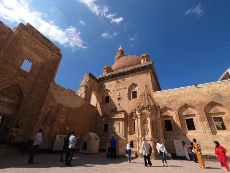Yerli ve yabancı turistler, UNESCO Dünya Mirası Geçici Listesi'nde yer alan ve görkemli mimarisiyle dikkati çeken sarayda bol bol fotoğraf çekti, Ahmed-i Hani Türbesi, Urartu Kalesi ve Eski Bayezid Camisi'ni de ziyaret etti.