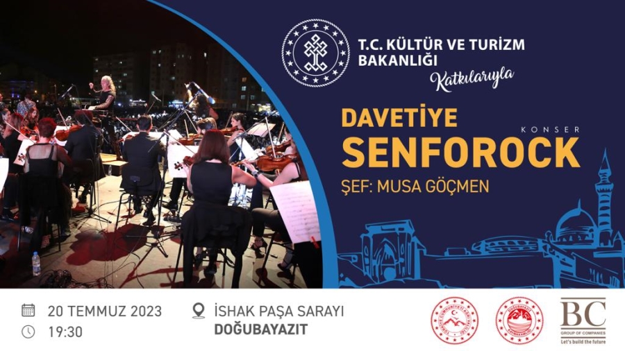 Kültür ve Turizm İl Müdürlüğünün katkılarıyla, BC Group'un düzenleyeceği SENFOROCK konseri Musa Göçmen şefliğinde İshak Paşa Sarayı'nda 20 Temmuz'da Saat 19:30'da gerçekleştirilecek.