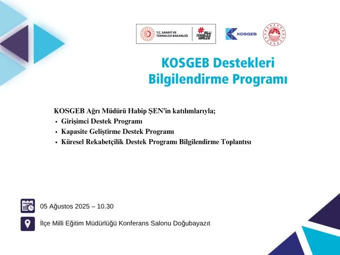 Doğubayazıt Ticaret ve Sanayi Odası KOSGEB Destekleri Bilgilendirme Toplantısı yapılacak