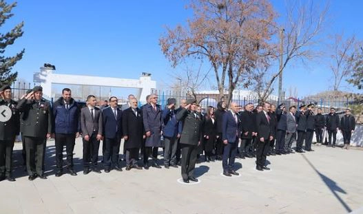 Program kapsamında ilk olarak saygı duruşunda bulunulmuş, akabinde İstiklal Marşı okunmuş ve çelenk sunumu gerçekleştirildi.