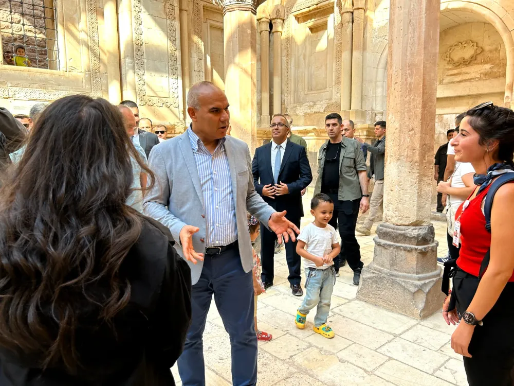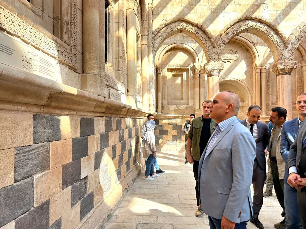 Vali Mustafa KOÇ, Selçuklu mimarisinden izler taşıyan ve taşa hayat veren motifleriyle tam bir sanat eseri olan İshak Paşa Sarayı'nda incelemelerde bulunarak, sarayı ziyaret eden vatandaşlarımızla bir araya geldi.