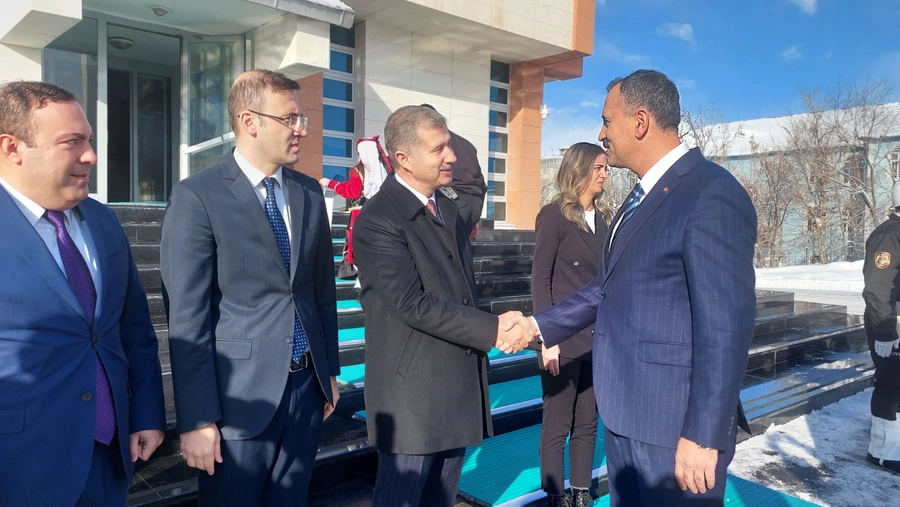 Ağrı Valiliği önünde gerçekleştirilen törende Vali Bozkurt, tören mangası tarafından karşılandı.