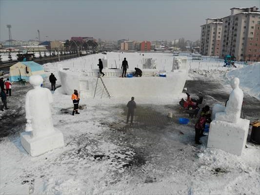 Ağrı'da, bu yıl ikincisi düzenlenecek kar festivali için kardan yapımına başlanan masal kahramanları heykelleri, Ağrı Dağı ve Nuh'un Gemisi ile ilgili çalışmalarda sona gelindi.