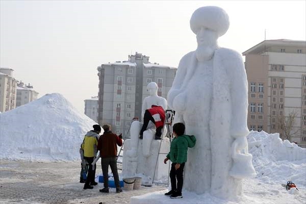Üniversitede görevli öğretim üyelerince oluşturulan heykeltıraş ekibi, masal kahramanları olarak bilinen Keloğlan, Hacivat-Karagöz, Nasreddin Hoca ve yöreye ait kaftan giymiş çoban heykellerini kardan yapmaya başladı.