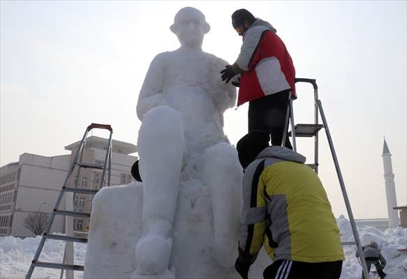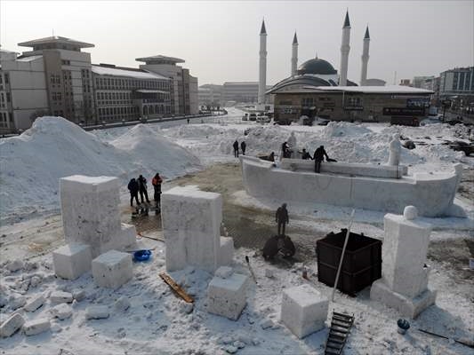 Millet Bahçesinde gerçekleştirilecek ve teması "Anadolu Masal Kahramanları" olarak belirlenen festival öncesi kardan heykellerin yapılması için belediye ekiplerince iş makineleriyle alana kar taşındı.