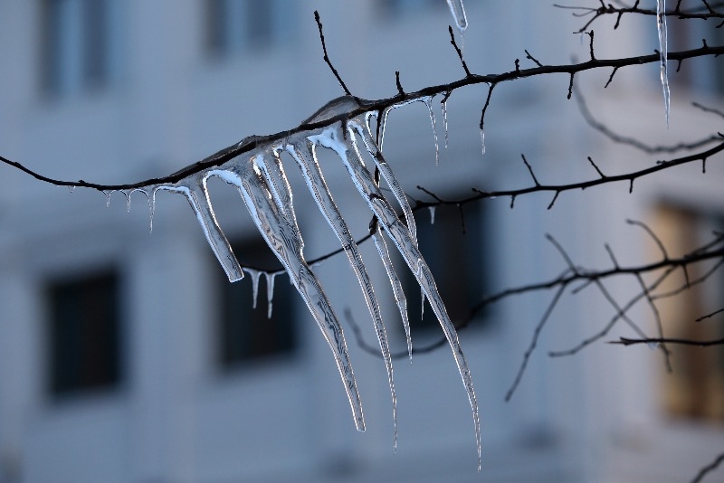 Şehir mezarlığında bulunan su deposunun çevresinde oluşan ve boyu 5 metreyi bulan buz sarkıtları güzel manzara oluşturdu.