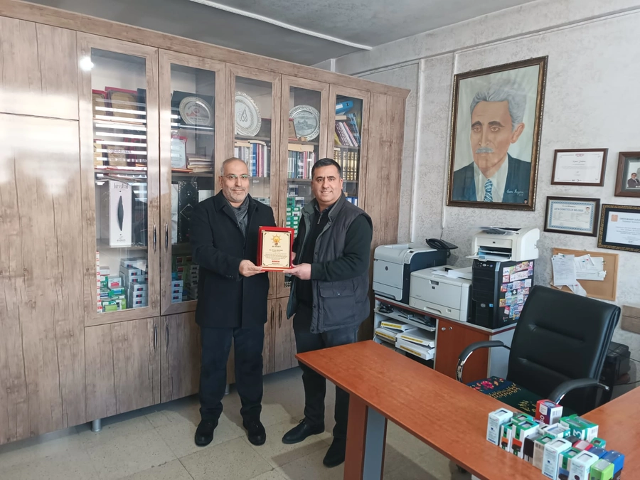 İlçe Başkanı M.Sena Geçit ve Parti yönetiminin ziyaretlerinde, Yazı İşleri müdürümüz Erhan Baydar’a gazetenin hizmetlerinden dolayı Plaket takdiminde bulundular.