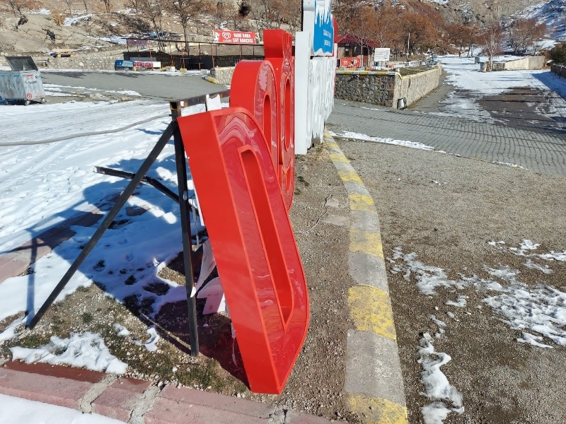 Doğubayazıt Belediyesinin turist akınına uğrayan şehrimizin yapısına katkı sağlamak amaçlı yaptığı sosyal ve görsel projeler kapsamında, şehrimizin nişanesi haline gelen yazılı ışıklı tabelalar, bazı kişi veya kişilerce kullanılamaz hale getirildi.