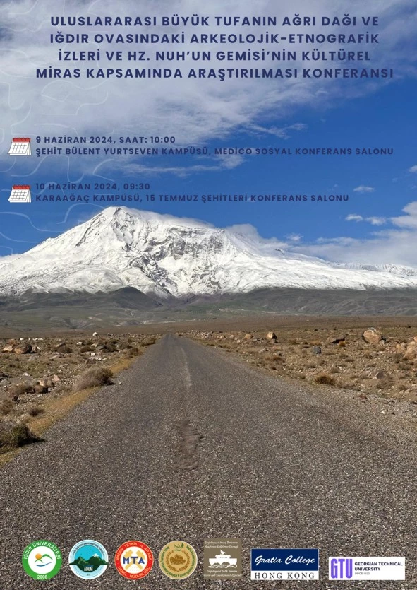 Bu kapsamda Derneğimizin yıllardır birlikte benzeri faaliyet ve çalışmaları yürüttüğü Hong Kong Nuh’un Gemisi Müzesi Başkanlığı, Gürcistan’ın yüzyıllık tarihiyle meşhur Teknik Üniversitesi, yine Ağrı Dağının yamacındaki Iğdır Üniversitemiz, yörede başarılı arazi çalışmalarını yürüten Maden ve Tetkik Arama Genel Müdürlüğü ile işbirliği halinde “VII. Uluslararası Nuh Tufanı'nın Ağrı Dağı ve Iğdır Ovasındaki Arkeolojik ve Etnografik İzleri Konferansı”nı yapıyoruz.