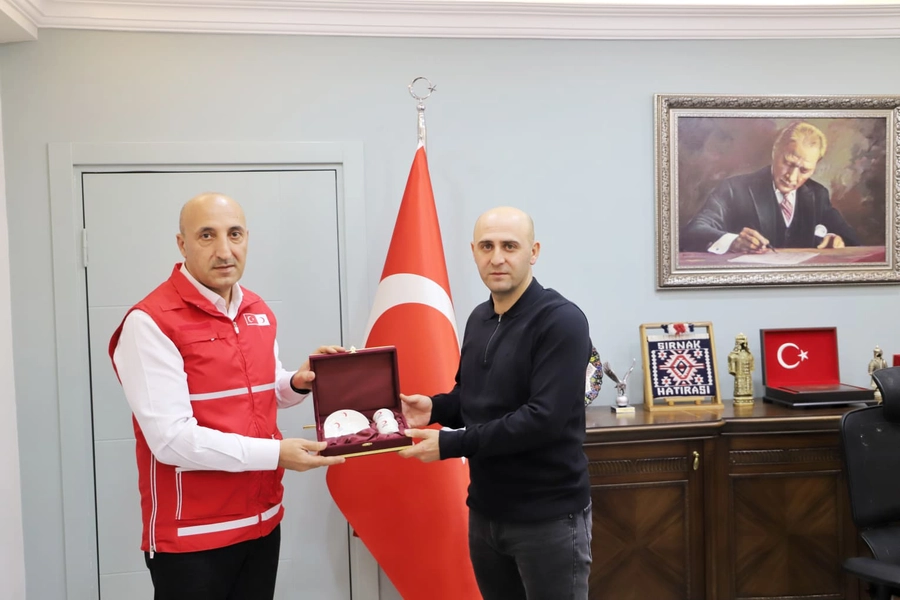 Doğubayazıt Kızılay Şube Başkanı Kemal Şahin ve şube yönetimi ile birlikte Doğubayazıt Kaymakamı Murat Ekinci'yi makamında ziyaret ettiler.