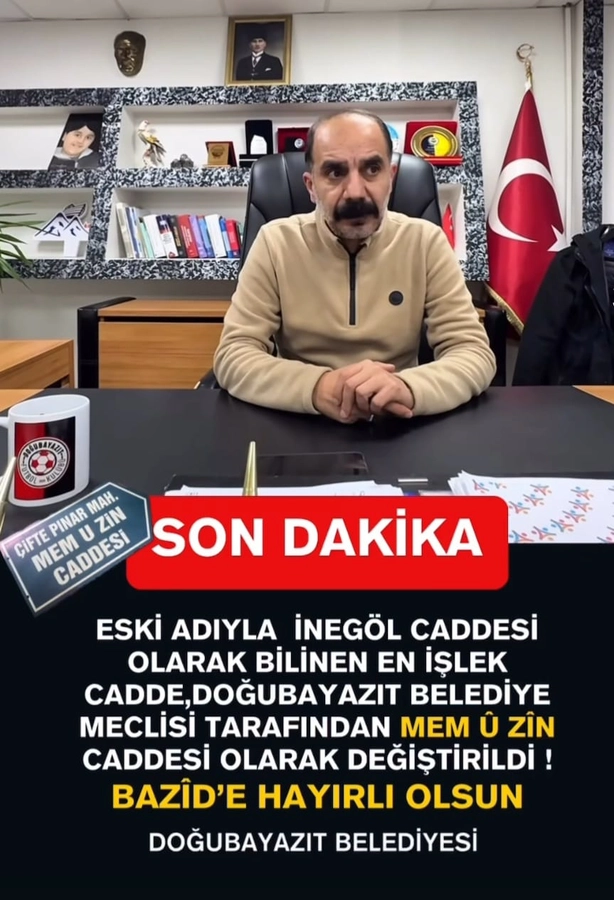 Eski adıyla İnegöl Caddesi olarak bilinen en işlek cadde, Doğubayazıt Belediye Meclisi tarafından MEM Û ZÎN Caddesi olarak değiştirildi. Belediye Başkanı Kenan Alkan, caddenin Meclis üyelerinin tamamının onayı ile değiştirilmesi sonrası yaptığı açıklamada, “Belediye Meclisi olarak yaptığımız toplantıda 25 Meclis üyesinin ortak görüşü doğrultusunda daha önce İnegöl caddesi Mem- u Zin caddesi olarak değiştirdik. Ahmed-i Hani ilçemizin en önemli değerlerinden biridir. Ahmed-i Xani'nin bir eseri olan Mem û Zin isminin işlek bir caddeye verilmesi bizim için çok önemli ve onurdur. Bundan böylede değerlerimizin isimlerini cadde ve sokaklara vermeye devam edeceğiz. Hayırlı olsun” dedi.