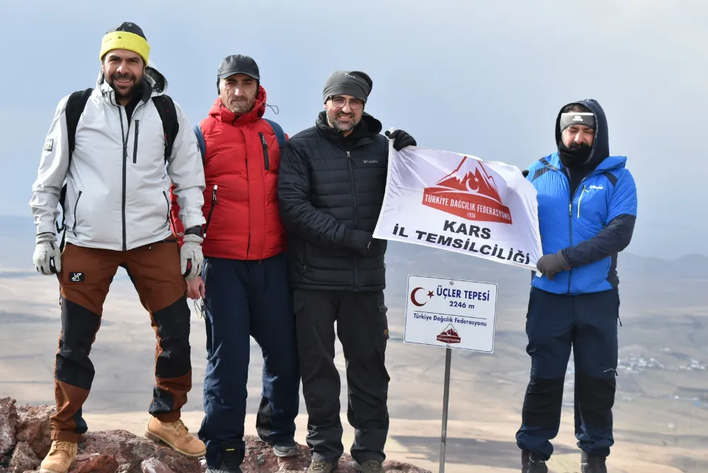 Daha önce Kars'taki Yahni Dağı'nın zirvesine rota ve zirve tabelası diken dağcılar, bu kez de 2 bin 246 rakımlı Üçler Tepesi'nin zirvesine bilgi amaçlı tabela yerleştirdi.