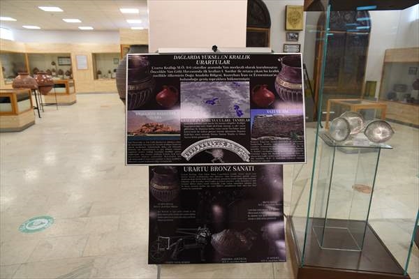 "İlk grup olan Urartular eserlerimizden gümüş kaburga gövdeli kaplar, gümüş ve altın işlemeli situla var. Situla, dinsel törenlerde kullanılan kaplardır. Yine sergide pektoral dediğimiz göğüslük ve at alınlığı var. Bunlar savaş atlarına Urartuların yerleştirmiş oldukları metal eserlerdir. Sergimizin amacı özellikle bu dönemlerde şehrimize yoğun gelen ziyaretçilerimizin depomuzda ne tür eserlerimizin olduğunu, sadece daimi olan sergiler dışında geçici olan sergilerimizi de görerek bu bölgenin ne kadar zengin bir kültürel varlığa sahip olduğunu göstermektir."