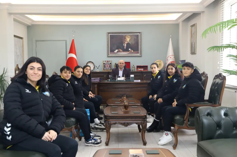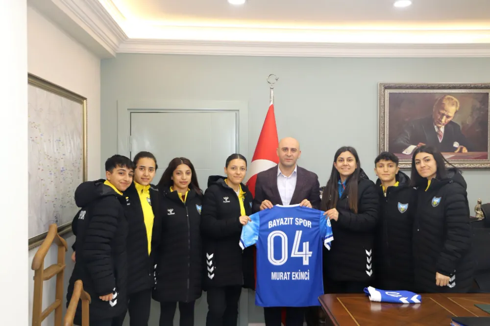 Kaymakam Murat Ekinci, Bayazıt Spor Kadın Futbol Kulübü Başkanı Canan Dursun ve oyuncuları makamında kabul etti. Kaymakamımız, kendisine Bayazıt Spor forması hediye eden takım yönetimi ve oyuncularına teşekkür edip, başarılar diledi.