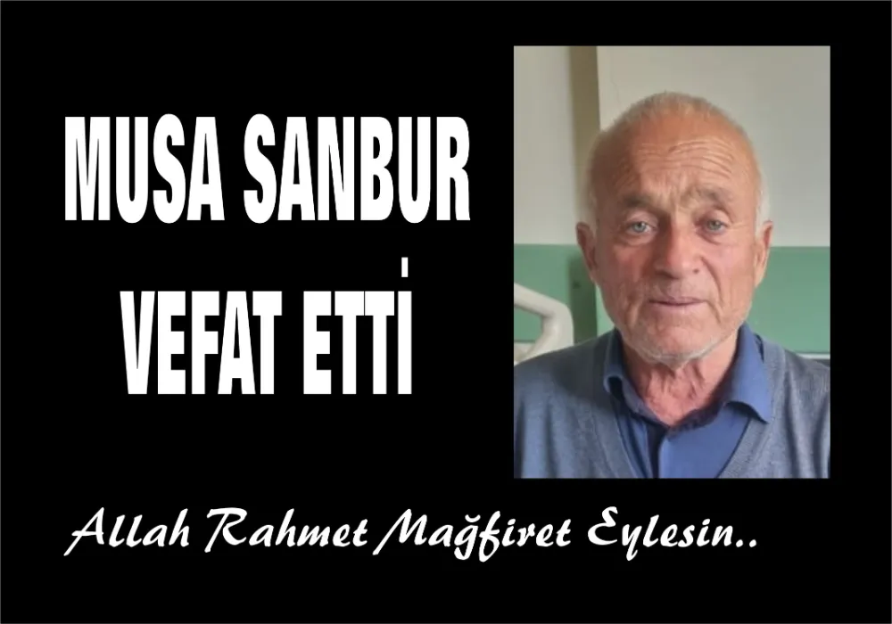 Meryemana köyünden Emekli Zabıta Memuru MUSA SANBUR vefat etti.Merhuma Allah'tan rahmet kederli ailesine başsağlığı dileriz.Merhumun cenazesi bugün izmir’den getirilip Meryemana köyünde defin edilecektir.