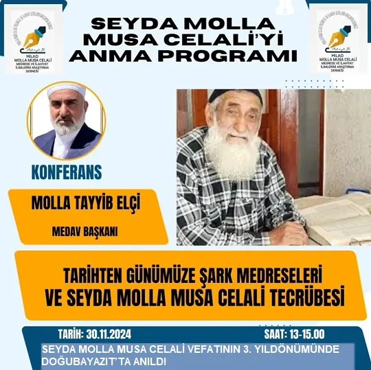 Tarihte büyük bir iz bırakan Şark medreselerinin ve bu medreselerde yetişen önemli ilim adamlarının anılacağı, "Tarihten Günümüze Şark Medreseleri ve Seyda Molla Musa Celâlî Tecrübesi" konulu konferans, Molla Musa Celâlî Medrese ve İlahiyat İlimleri Araştırma Derneği (MİLAD) tarafından düzenleniyor. Program, dönemin önemli şahsiyetlerinden Seyda Molla Musa Celâlî'nin fikirlerini ve tecrübelerini gün yüzüne çıkararak, geçmişten günümüze Şark medreselerinin ilim geleneğini günümüz toplumuna taşımayı amaçlıyor.