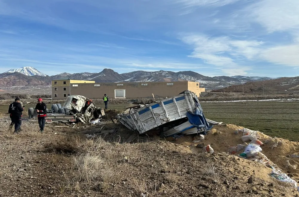 Doğubayazıt'ta şarampole yuvarlanan kamyonun sürücüsü hayatını kaybetti.