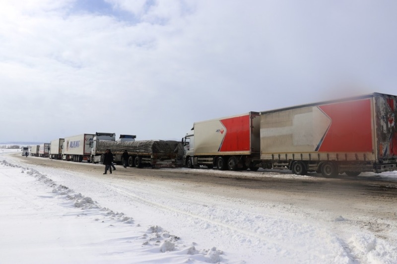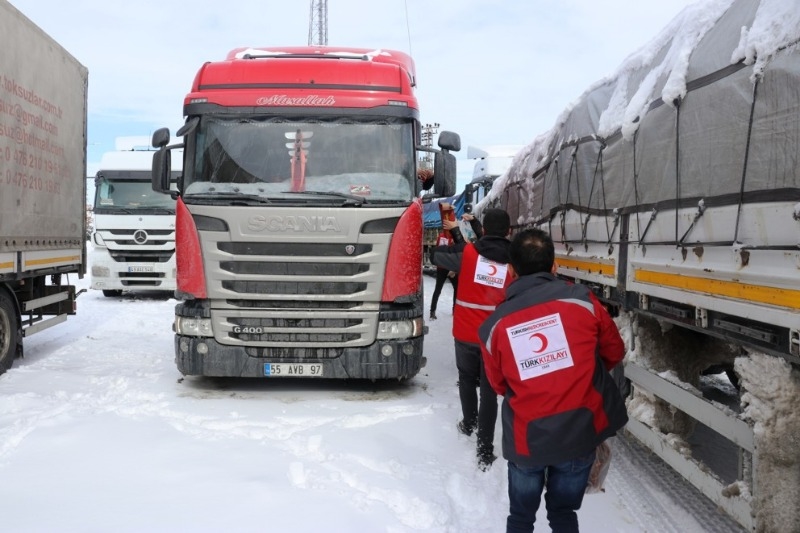 Ahmedi Hani Havalimanı Kavşağı'nda çok sayıda tırın bekletilmesi nedeniyle uzun araç kuyrukları oluştu. Türk Kızılay Ağrı Şubesi gönüllüleri de tır sürücülerine yiyecek yardımında bulundu.