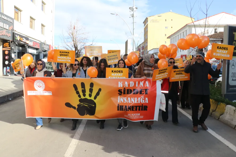 Ağrı Aile ve Sosyal Hizmetler İl Müdürlüğü personeli, "25 Kasım Kadına Yönelik Şiddetle Mücadele Günü" kapsamında yürüyüş yaptı.