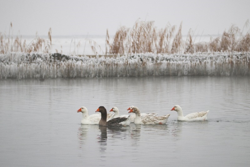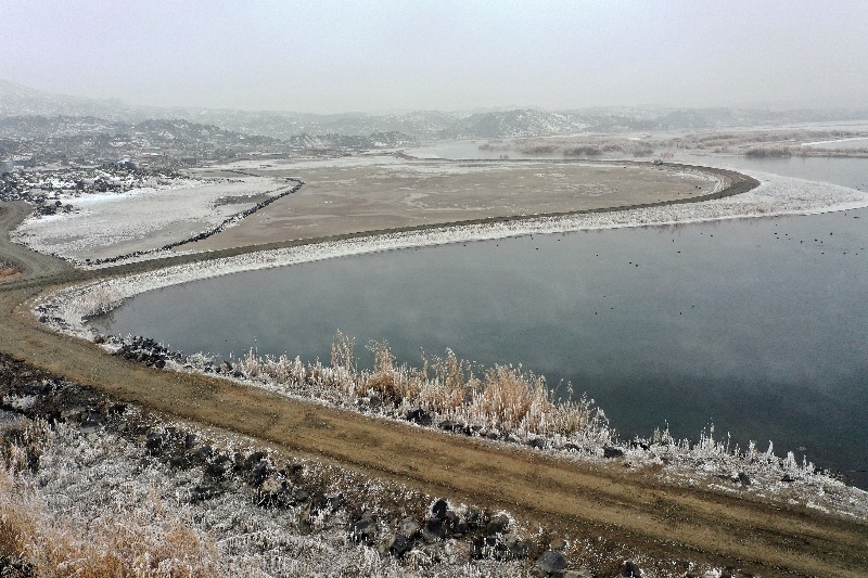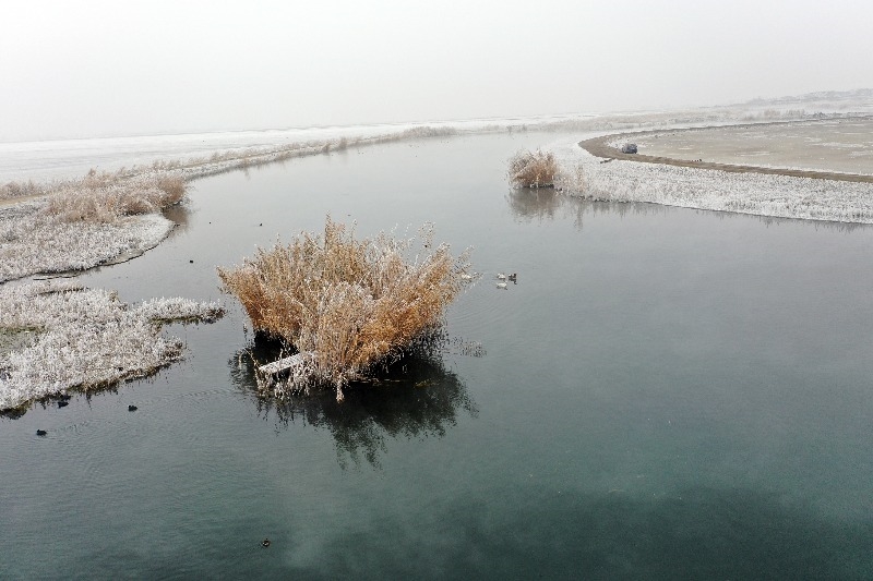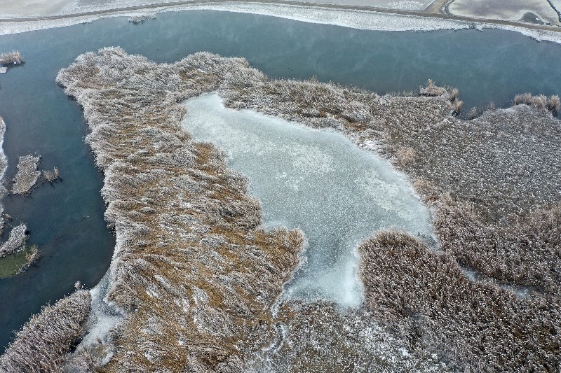 Iğdır ve Ağrı sınırındaki Ağrı Dağı eteklerinde yer alan Ağrı Dağı Milli Parkı'ndaki sulak alanlar, hava sıcaklığının sıfırın altına düşmesiyle buzla kaplandı.