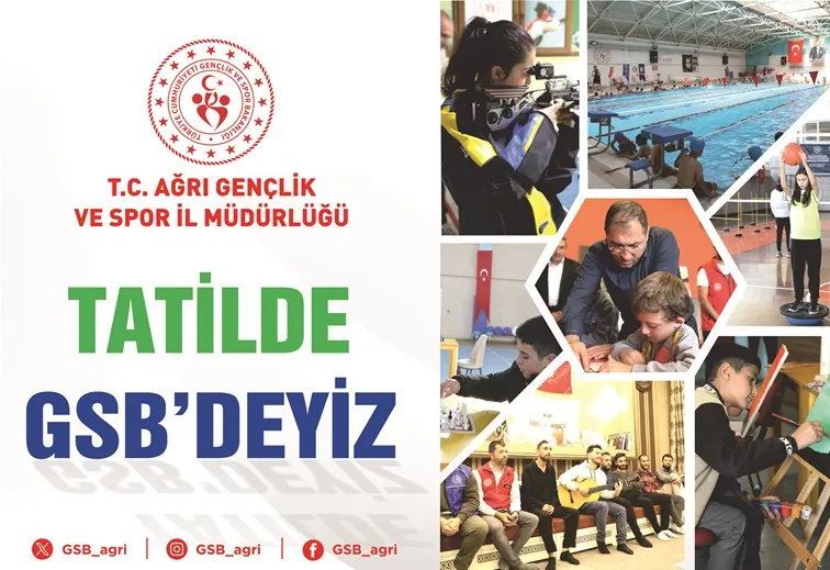 Gençlik ve Spor Bakanlığı tarafından düzenlenen TATİLDE GSB’DEYİZ projesi kapsamında, 20-31 Ocak 2025 tarihleri arasında Ağrı Gençlik ve Spor İl Müdürlüğü bünyesindeki Gençlik Merkezlerinde ve spor tesislerinde zengin bir etkinlik programı öğrencileri bekliyor. Bu projeyle, ortaokul ve lise öğrencilerine sosyal, kültürel ve sportif alanda benzersiz fırsatlar sağlanacak.
