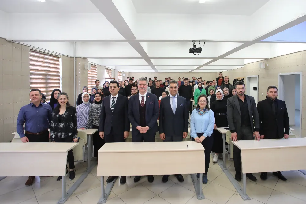 Siyaset Bilimi ve Kamu Yönetimi Bölümü Dr. Öğr. Üyesi Ferda KOÇ’un moderatörlüğünü yaptığı söyleşiye İİBF Dekanı Prof. Dr. Erdal YILMAZ ile akademisyen ve öğrenciler katıldı.