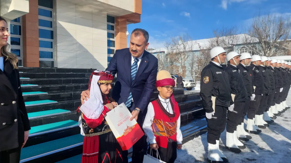 Ağrı Valiliği önünde gerçekleştirilen törende Vali Bozkurt, tören mangası tarafından karşılandı.
