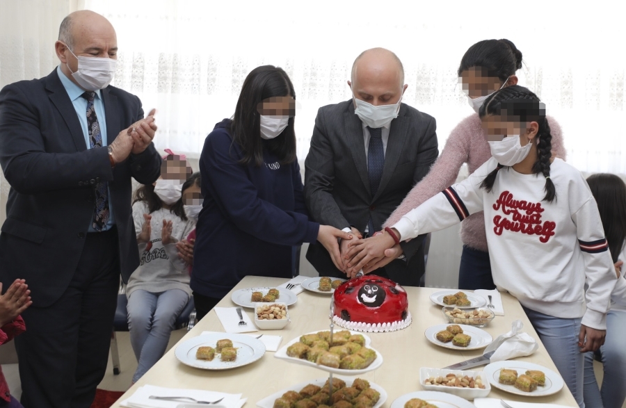 Ağrı Valisi Osman Varol, Çocuk Evleri Sitesi'ni ziyaret etti, çocuklarla birlikte pasta kesti.