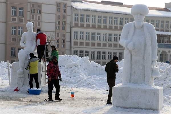Üniversitede görevli öğretim üyelerince oluşturulan heykeltıraş ekibi, masal kahramanları olarak bilinen Keloğlan, Hacivat-Karagöz, Nasreddin Hoca ve yöreye ait kaftan giymiş çoban heykellerini kardan yapmaya başladı.