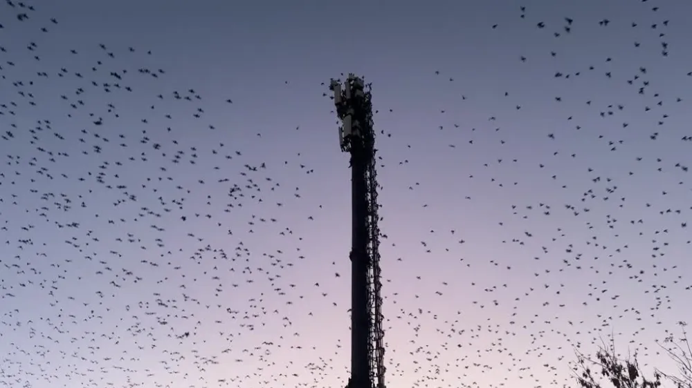 Çıkardıkları sesler eşliğinde dakikalarca gökyüzünde süzülen sığırcık kuşları, daha sonra başka yöne gitti.
