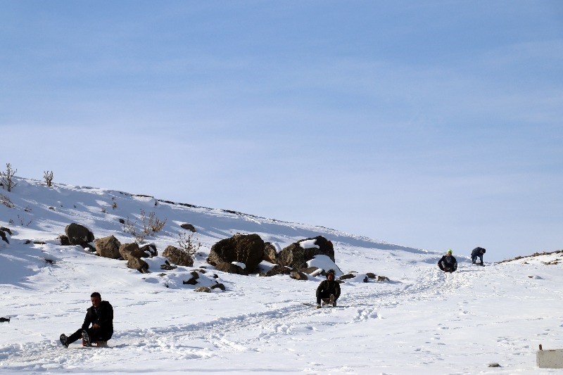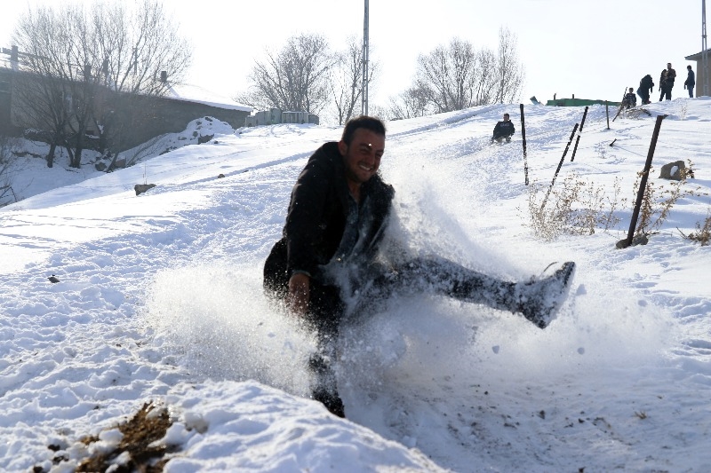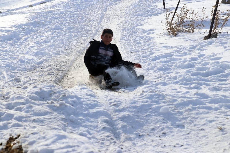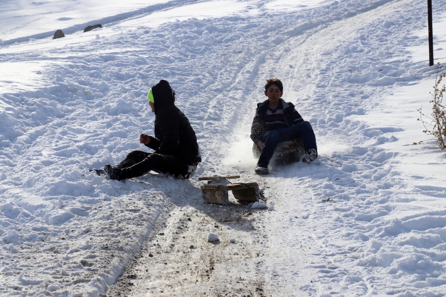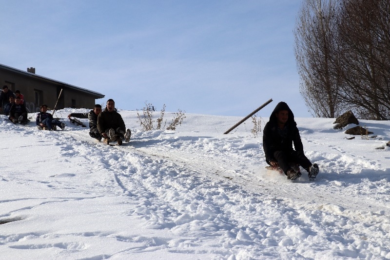 Taşlıçay ilçesine bağlı Aşağı Toklu köyündeki çocuklar için kış mevsimi çile olmaktan çıkıp eğlenceye dönüşüyor.