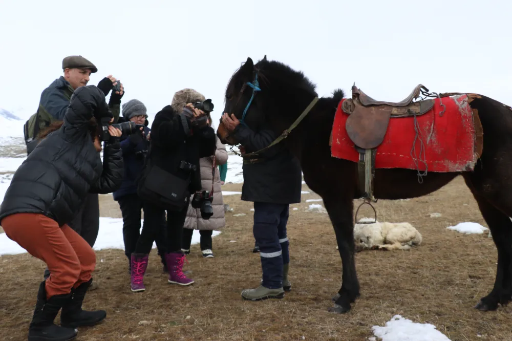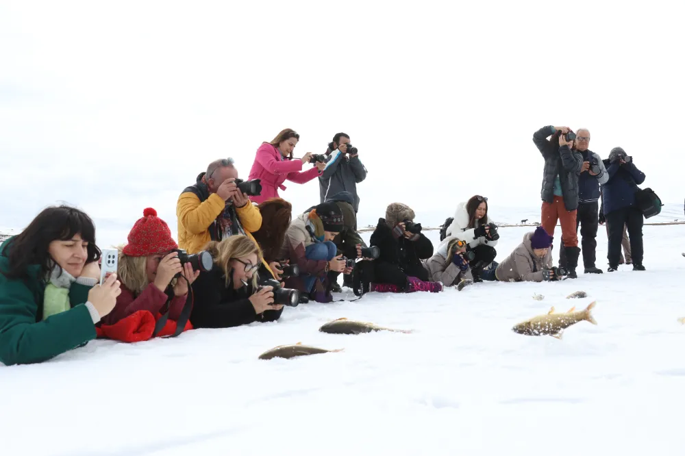 Tur firmaları aracılığıyla kafileler halinde kente gelen doğa ve fotoğraf tutkunları, ilk olarak dondurucu soğukların etkisiyle tamamen buzla kaplanan 2241 rakımlı Balık Gölü'nü ve çevresini geziyor.