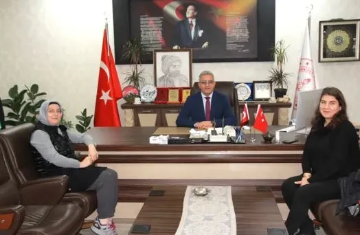 İbrahim Çeçen Üniversitesi Ahmedi Hani Meslek Yüksekokulu Çocuk Gelişimi Programı Öğretim Görevlisi Dilek Şahinpınar ile El Sanatları Programı Öğretim Görevlisi Burcu Toğrul, İlçe Milli Eğitim Müdürü Davut ŞEN’i makamında ziyaret etti.