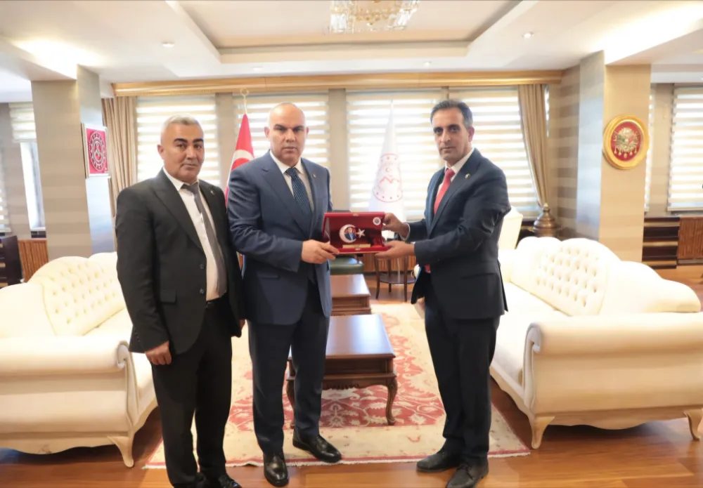 Anadolu Doğubayazıt Ölümsüz Kahramanlar Sosyal Yardımlaşma ve Dayanışma Dernek Başkanı Selahattin Akkuş ve Dernek Başkan Yardımcısı Zeki Gözegir Ağrı Valisi Mustafa Koç’u makamında ziyaret ettiler.