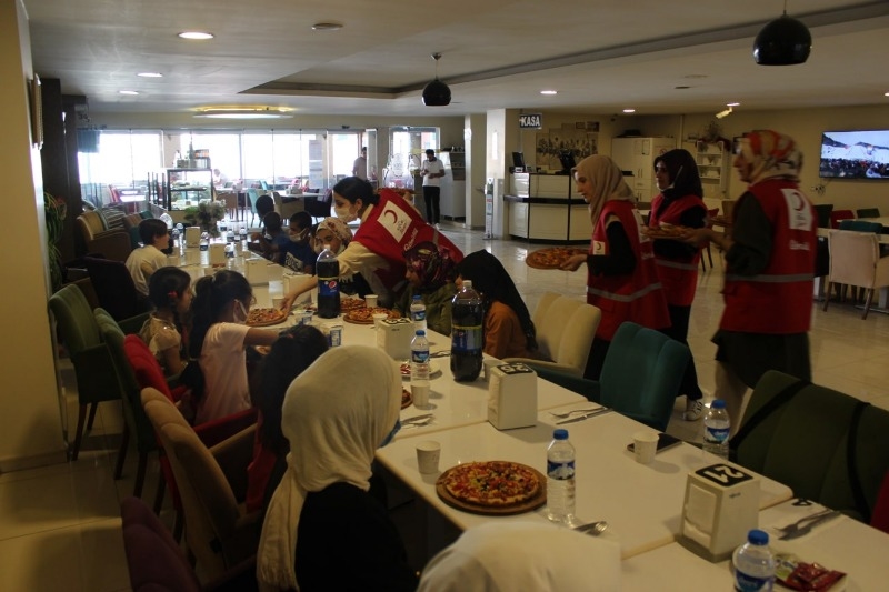 Türk Kızılay gönüllüleri, Doğubayazıt‘ta köy çocuklarını tarihi İshak Paşa Sarayı'nda gezdirip pizza ikram etti.