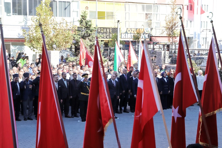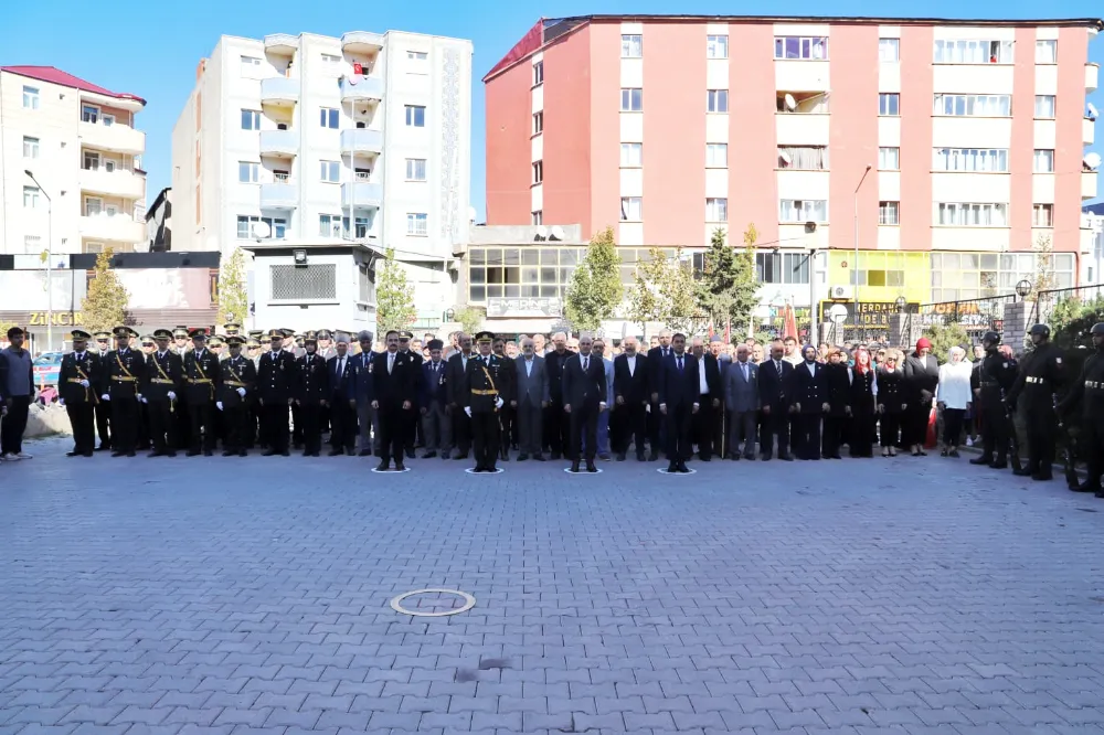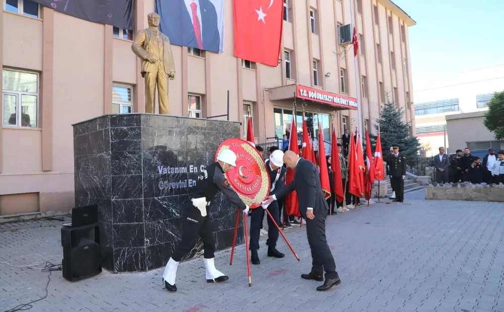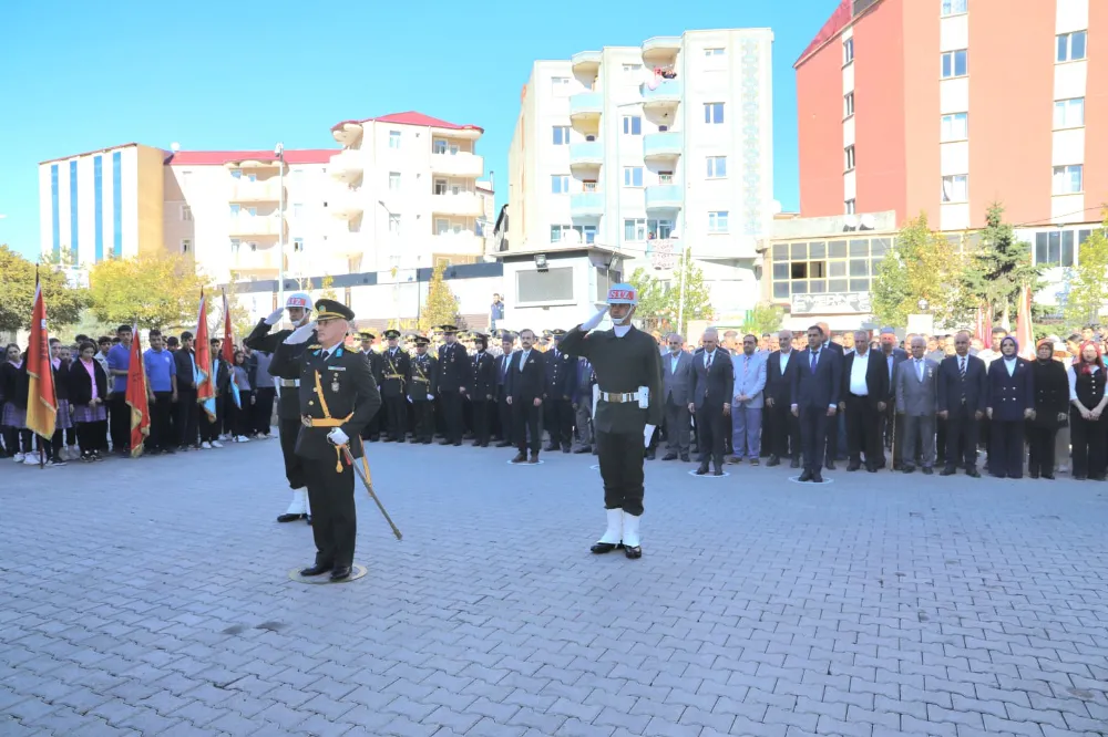 Tören, Kaymakamımız Sayın Murat EKİNCİ’nin Atatürk Anıtı’na çelenk sunmasıyla başladı. Ardından Garnizon Komutanlığı ve Belediye Başkanlığı tarafından da Atatürk Anıtı’na çelenk sunuldu.