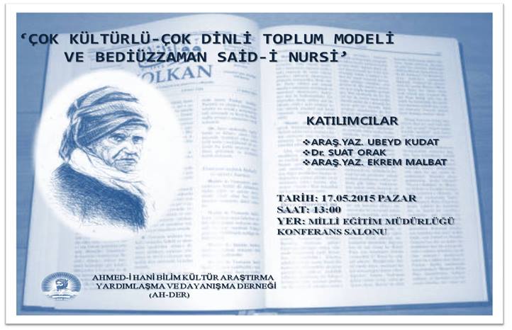 Doğubayazıt’ta 2004 yılından beri faaliyet gösteren Ahmed-i Hani Bilim Kültür Araştırma Yardımlaşma Ve Dayanışma Derneği (Ah-Der) Bediüzzaman Said-i Nursi’nin vefatının 56. yıldönümü vesilesiyle bir konferans verilecektir.