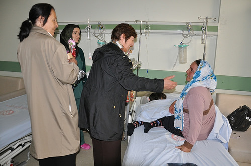 hastanesi, Mediza hastanesi ve sağlık ocaklarındaki hemşire ve hastaları ziyaret ederek karanfiller dağıttı.