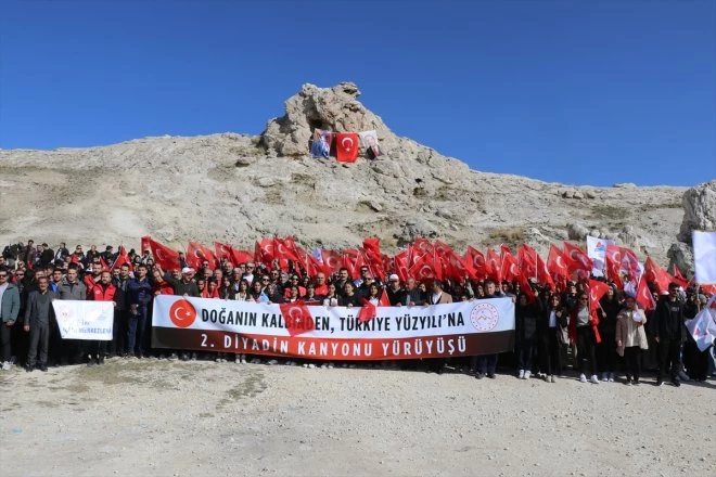 Ağrı'nın Diyadin ilçesindeki Murat Kanyonu'nu tanıtmak amacıyla yaklaşık 1000 kişinin katılımıyla 8 kilometrelik "Doğanın kalbinden Türkiye Yüzyılı'na 2. Diyadin Kanyonu Yürüyüşü" yapıldı.