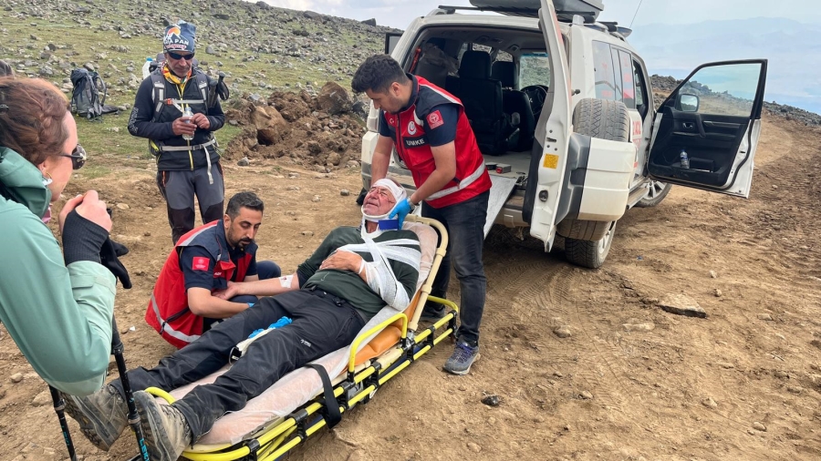 Doğubayazıt’ta Ağrı Dağı'na zirve tırmanışı yaparken düşerek yaralanan yabancı uyruklu dağcı tedavi altına alındı. Sağlık ekipleri, kafası ve omzundan yaralanan dağcıya 3200 rakımda ilk müdahaleyi yaptıktan sonra ambulansla Doğubayazıt Doç. Dr. Yaşar Eryılmaz Devlet Hastanesine kaldırdı.