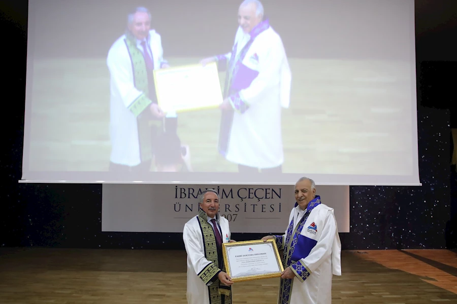 Akademik Yılı Açılış Töreni'nde Fahri Doktora unvanı tevdi edilen iş insanı Abdolbari Goozal ve iş insanı Celal Oruç eğitime ve öğrencilere her zaman destek vermeye devam edeceklerini belirttiler.