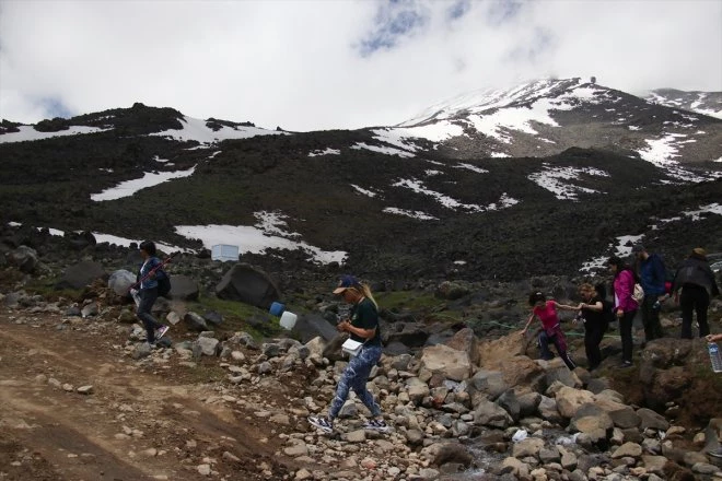Doğa tutkunu Burcu Salan da dağın görkeminden çok etkilendiğini, çiçeklerin çok güzel olduğunu ve 4 mevsimi bir arada yaşadıklarını aktardı.AA