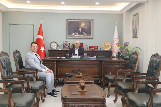 Kaymakam Murat Ekinci, İlçe Sağlık Müdürü olarak atanan Dr. Muhammed Rıza Kayalı'yı makamında kabul etti.