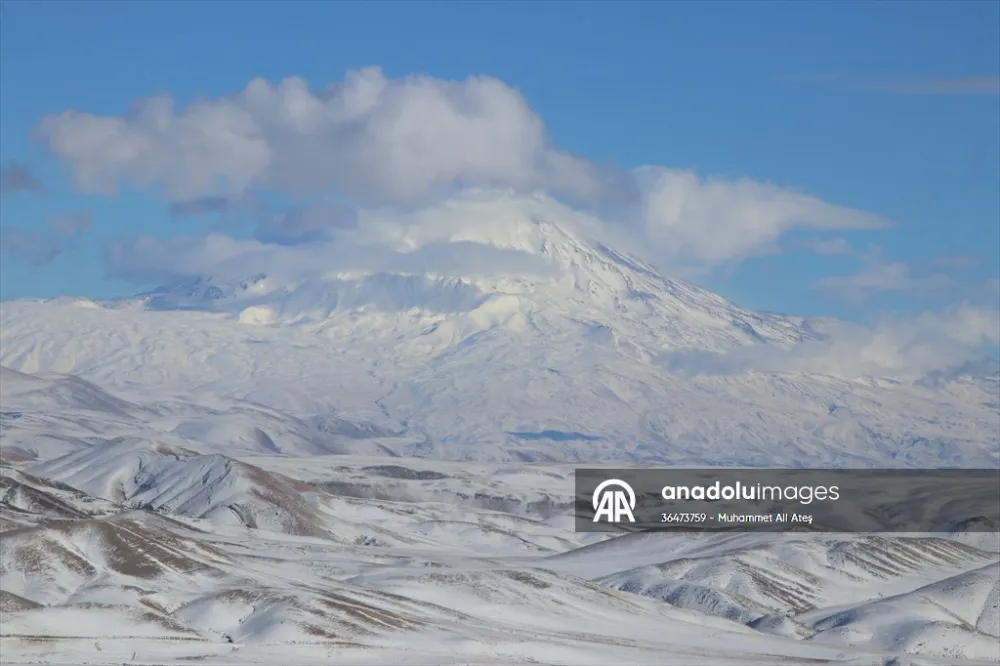 Doğubayazıt ilçesindeki Ağrı Dağı yeniden karla kaplandı. Kenti beyaza bürüyen kar yağışı, 5 bin 137 rakımla yurdun zirvesi olan Ağrı Dağı'nda da etkili oldu.