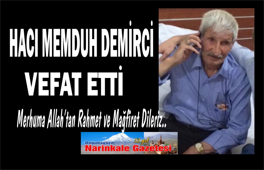Akrabamız Merhum Necati Baydar'ın kaynı Hacı Memduh Demirci Erzurum'da vefat etti. Merhuma Allah'tan rahmet kederli ailesine başsağlığı dileriz. İrt.Tel:Mesut Demirci: 0532 713 80 26