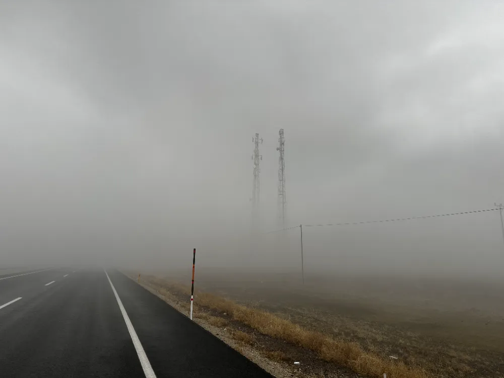 Iğdır-Doğubayazıt kara yolunun Pamuk Geçidi bölgesinde yoğun sis nedeniyle görüş mesafesi 10 metreye kadar düştü. Bazı sürücüler kontrollü ilerlerken, kimisi de araçlarını park ederek sisin çekilmesini bekledi.