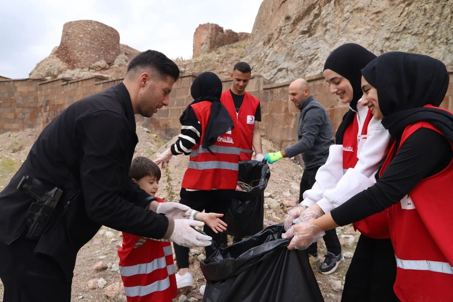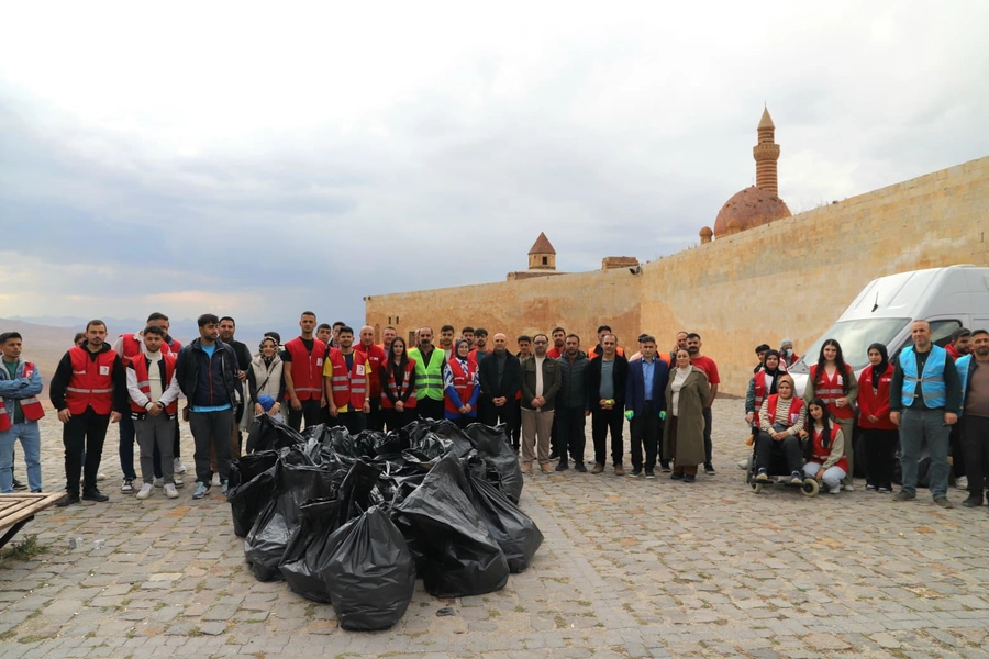 Kızılay Doğubayazıt Şubesi öncülüğünde İshak Paşa Sarayı ve Ahmedi Hani Türbesi çevresinde “çevre temizliği etkinliği” düzenlendi.